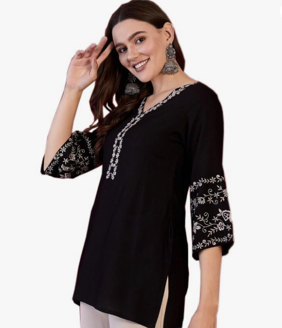 Elegant Black Base: The kurti is in a versatile black hue, lending a sophisticated and timeless appeal.