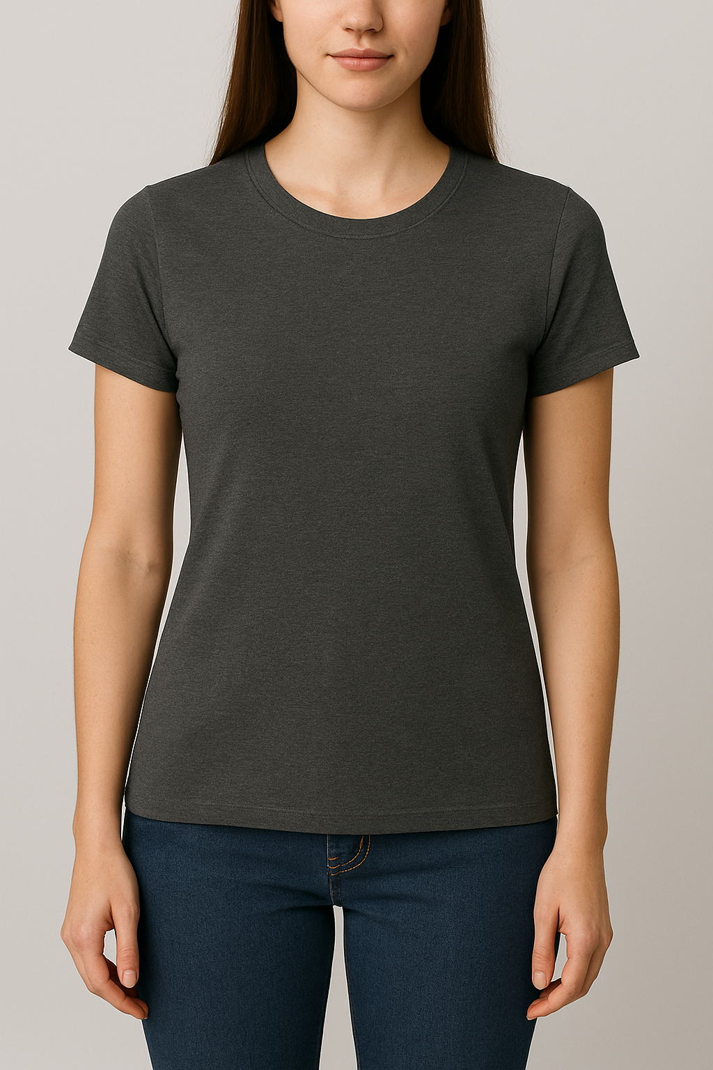 A timeless wardrobe essential, this women’s heather dark gray crew neck T-shirt offers a perfect blend of style, comfort, and durability. The premium cotton blend fabric feels soft against the skin while maintaining a structured yet flexible fit, making it ideal for daily wear or layering.